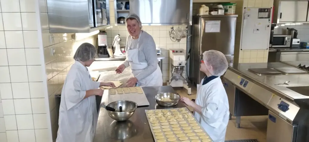 Cette belle initiative a rĂ©uni trois bĂ©nĂ©voles retraitĂ©es qui ont gĂ©nĂ©reusement offert de leur temps pour accompagner Ă la fois le personnel de cuisine et, surtout, les jeunes de lâĂ©tablissement dans la confection de ces petits gĂąteaux traditionnels alsaciens. Lâobjectif Ă©tait double : faire vivre une tradition emblĂ©matique de la pĂ©riode de lâAvent et rĂ©colter des fonds au profit de la COPE du DITEP.