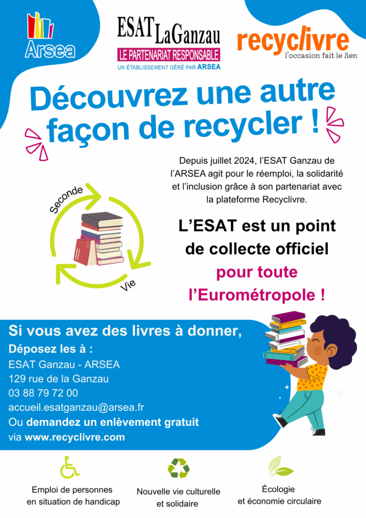 âš LâĂ©tablissement est partenaire officiel de Recyclivre et point de collecte et de traitement des livres pour toute lâEuromĂ©tropole.